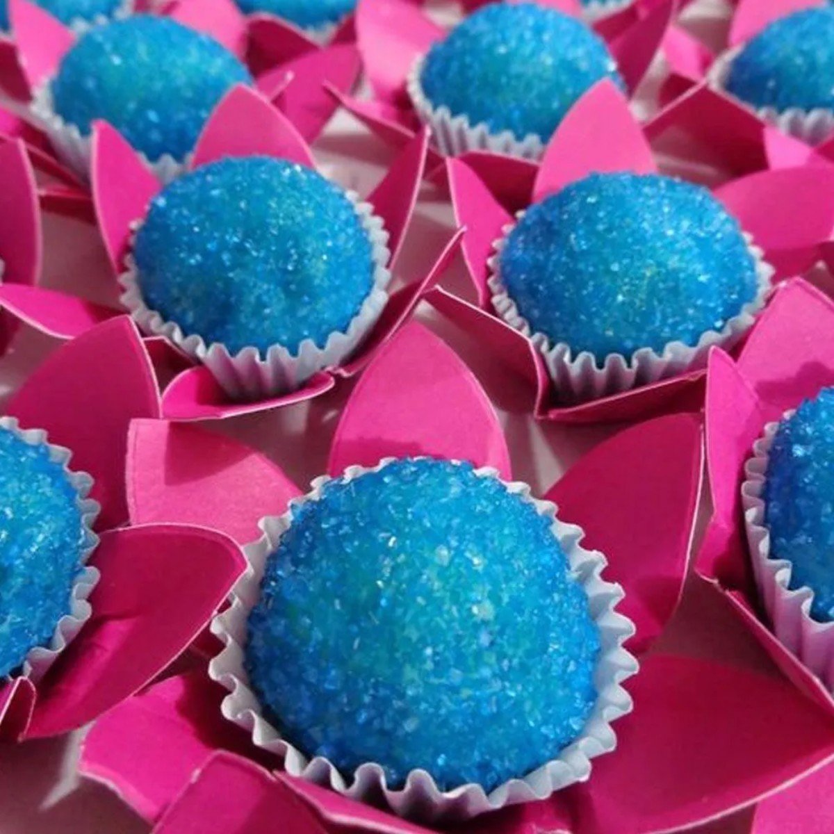 · Material: Açúcar cristal tingido em tonalidades de azul (mix de nuances).