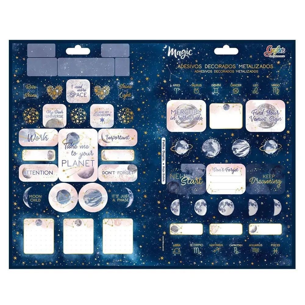 A cartela de adesivo decorado Magic da Tilibra, é uma ótima escolha para decorar e usar do jeito que quiser. Com um design detalhado e chamativo, irá deixar tudo mais mágico.