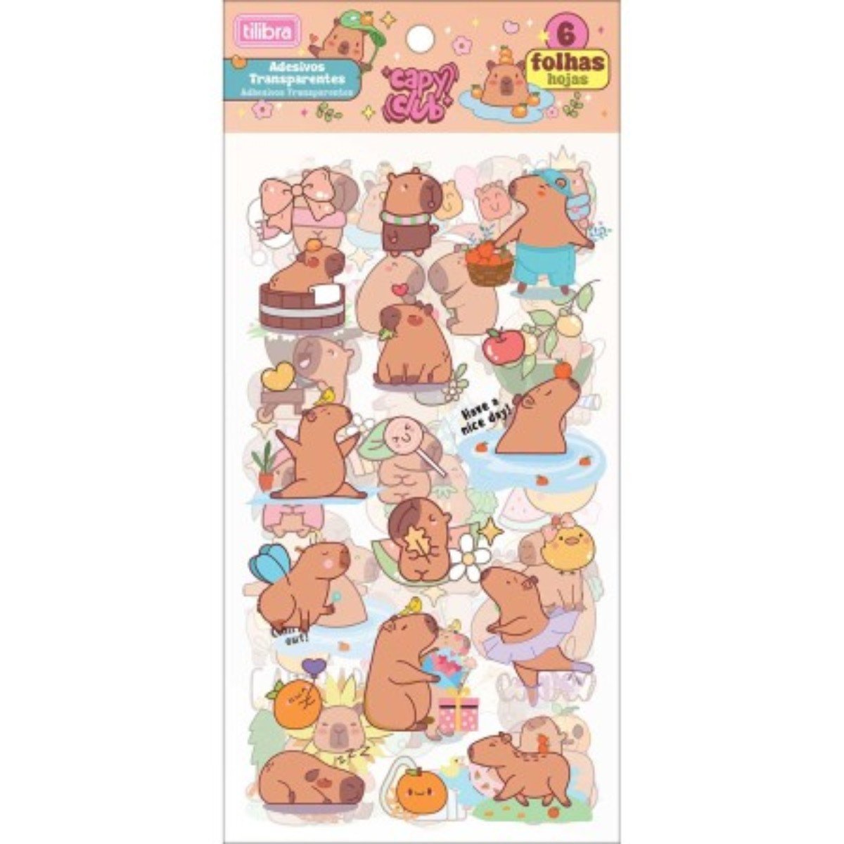 Adesivos Transparente 06 Folhas Capivara Capy Club Tilibra