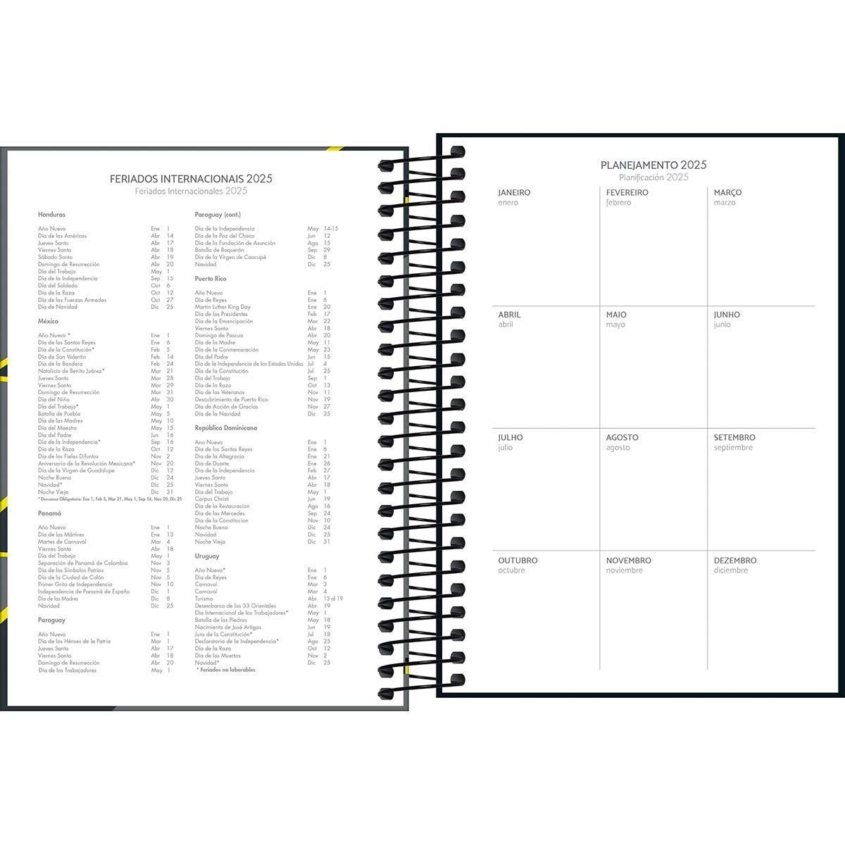 A Agenda Espiral Diária Pepper 2025 tem visão de 1 dia por página, exceto sábado e domingo. Com artes básicas e neutras, Pepper possui estampas diversificadas para o público masculino e feminino.