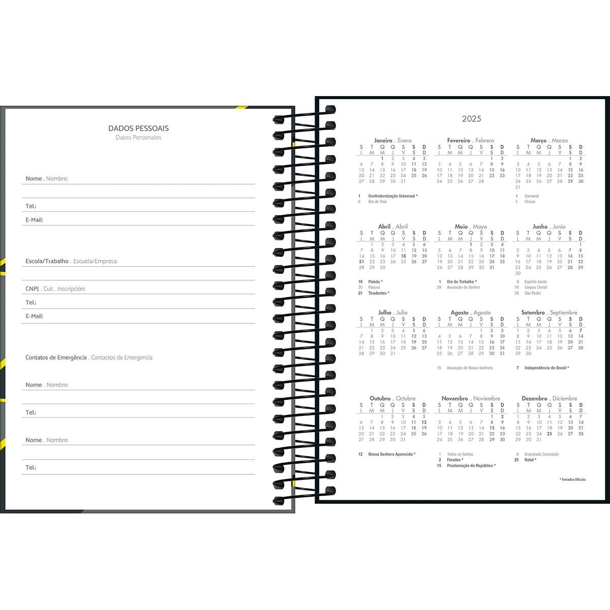 A Agenda Espiral Diária Pepper 2025 tem visão de 1 dia por página, exceto sábado e domingo. Com artes básicas e neutras, Pepper possui estampas diversificadas para o público masculino e feminino.