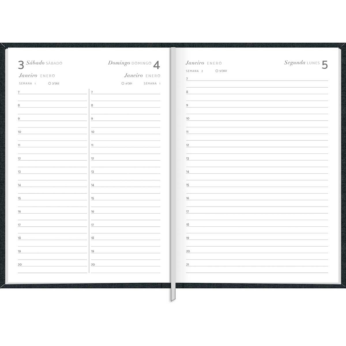 Planeje seus compromissos com a agenda executiva costurada Milano da Tilibra. O produto tem tamanho 13,4 x 19,2 cm, capa dura com espuma para oferecer visual sofisticado, fitilho para marcar página, folhas com visão de um dia por página, exceto aos sábados e domingos, e pautas com horário entre 7h e 21h. Esta agenda 2026, que possui 176 folhas, é a escolha certa para manter a rotina sempre em ordem.