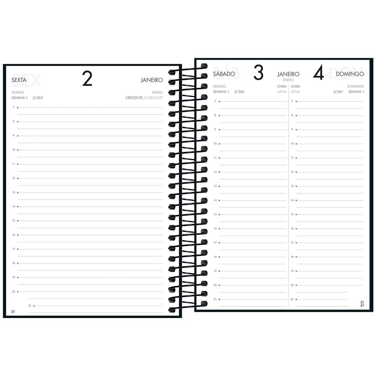 A Agenda Executiva Espiral Diária Napoli 2026 tem visão de 1 dia por página, exceto sábado e domingo. Possui capa revestida em material especial. Ideal para a organização do dia a dia, em casa ou no trabalho.