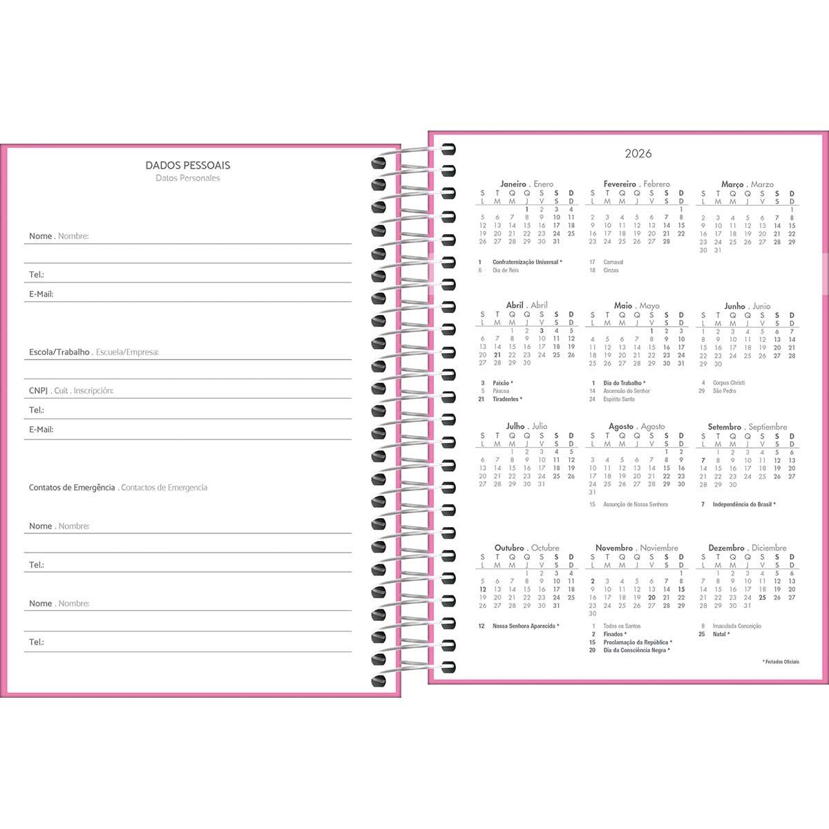 Agenda 2026 Diária Espiral Rosa Pets D + Tilibra