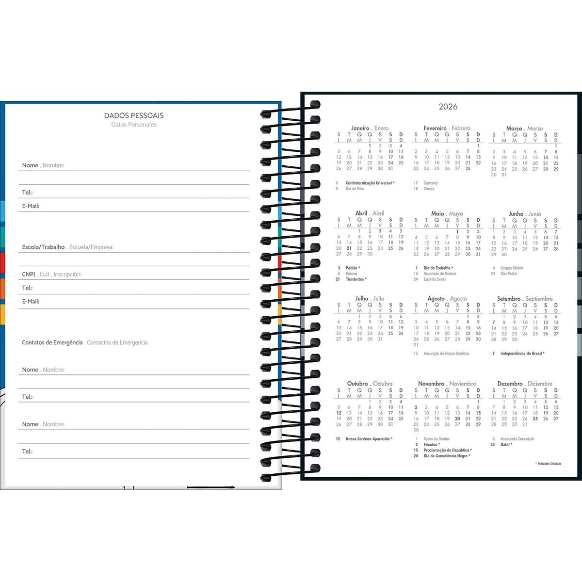 A Agenda Espiral Diária Pepper 2025 tem visão de 1 dia por página, exceto sábado e domingo. Com artes básicas e neutras, Pepper possui estampas diversificadas para o público masculino e feminino.