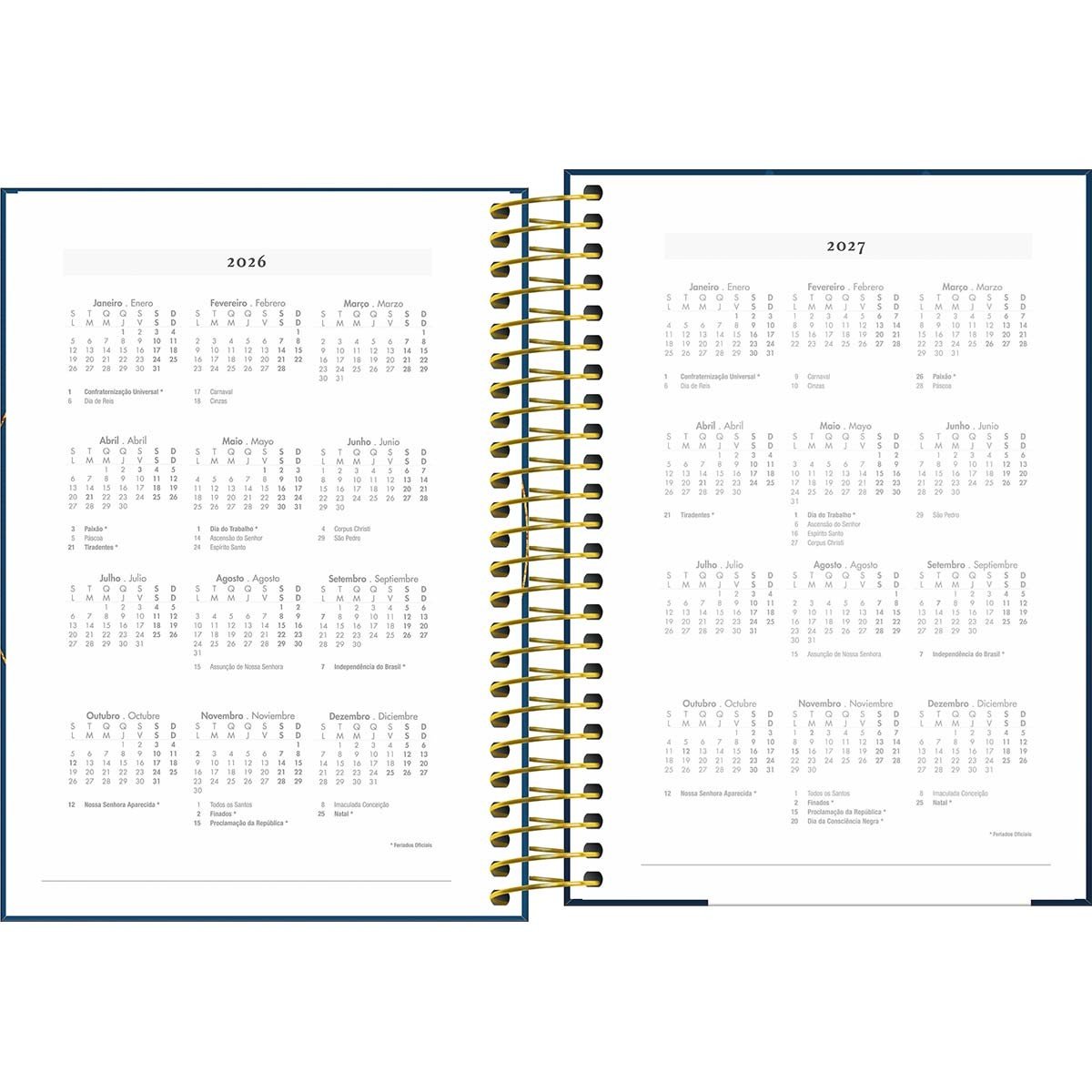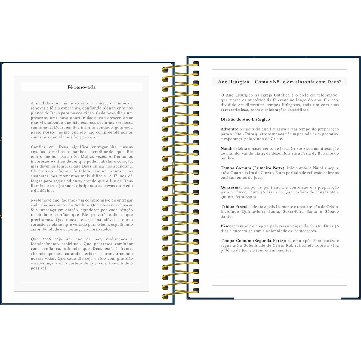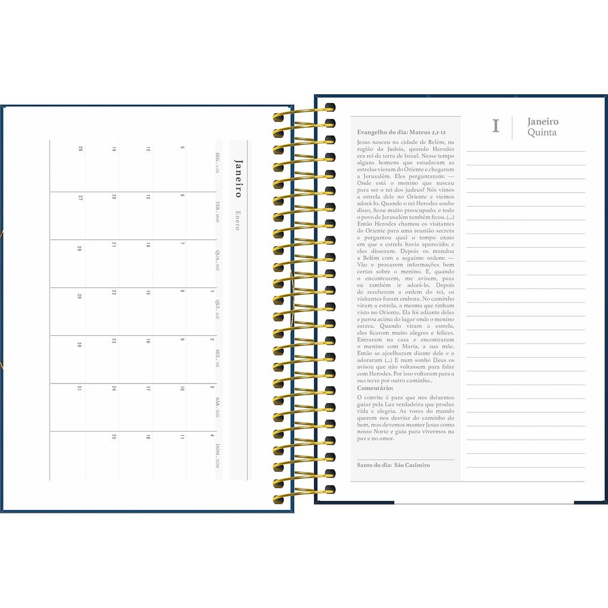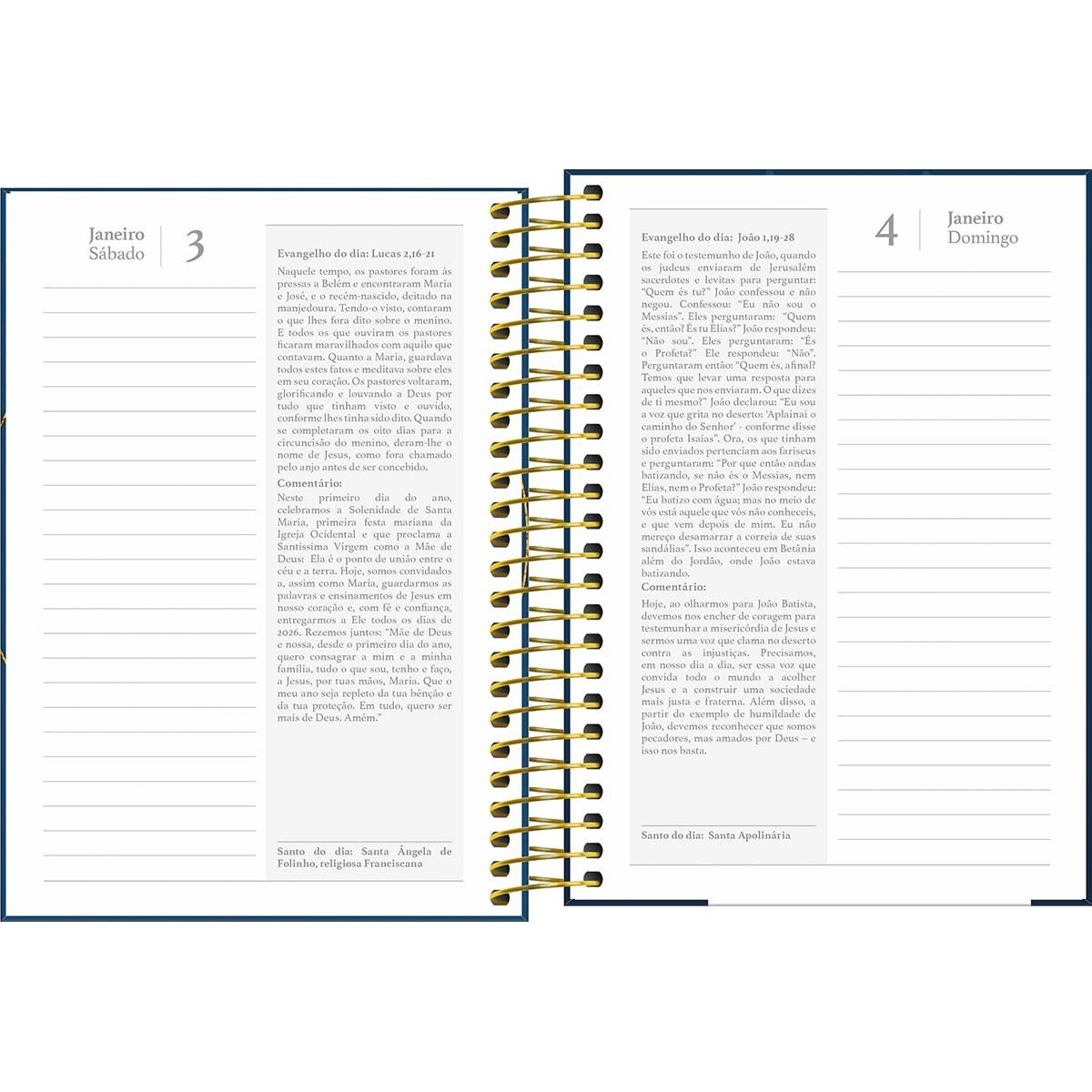 A Agenda Espiral Diária 14 x 20 cm Bíblica 2026 tem visão de 1 dia por página. O produto tem capa dura, acabamento espiral e 208 folhas