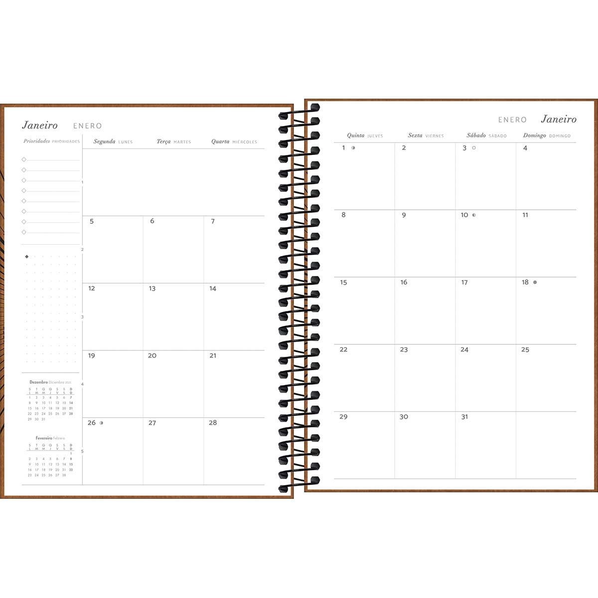 O Planner Espiral 17,7 x 24 cm Prátika 2026 pode ser usado para organizar os compromissos do dia a dia, em casa e no trabalho. O produto possui acabamento em espiral, capa em material especial, bolsa plástica e 80 folhas com visões anual, mensal, semanal e páginas para anotações.
