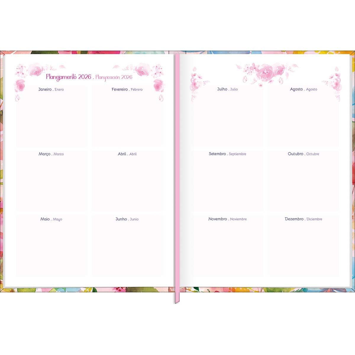 • Organização completa: Espaço diário para registrar compromissos e tarefas.