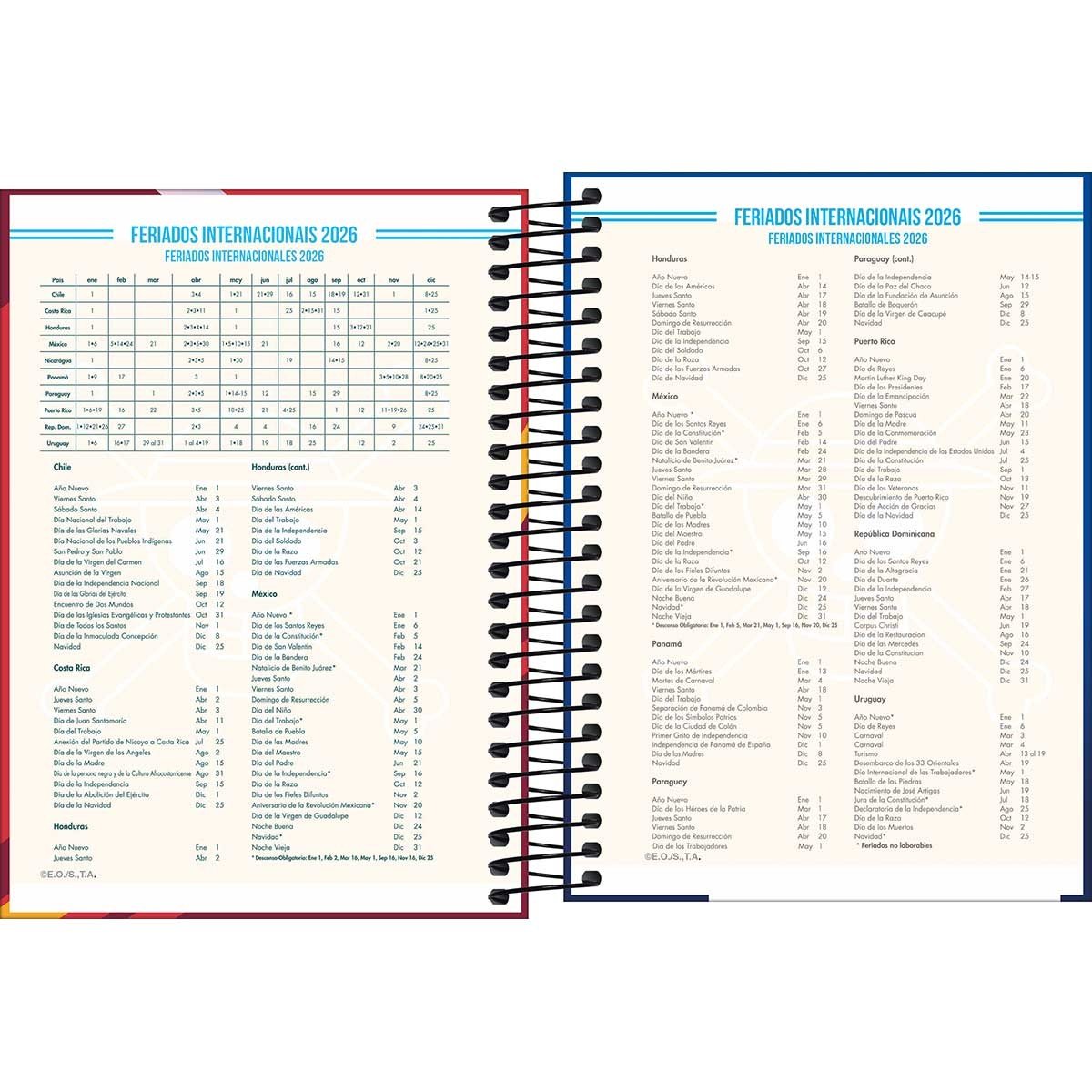 Extras: Visão anual, calendário, espaço para contatos, compromissos e anotações importantes