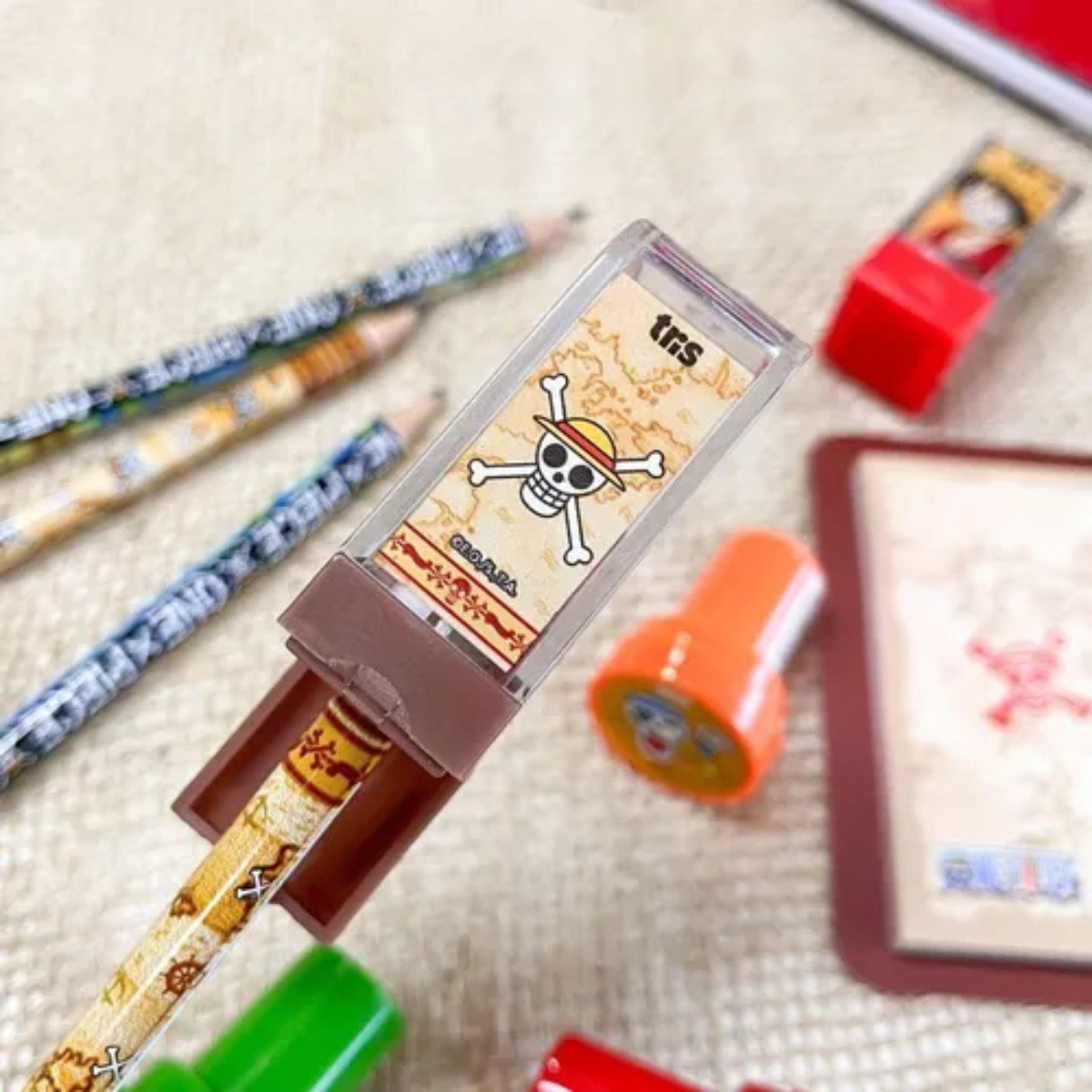 A Tris embarcou no mundo da papelaria com o pirata mais popular dos animes e mangás do Japão! A linha One Piece traz as aventuras de Luffy e sua tripulação em busca maior tesouro de todos: para você se tornar o Rei dos Estudos! O apontador One Piece possui estampas divertidas e depósito que evita sujeira.