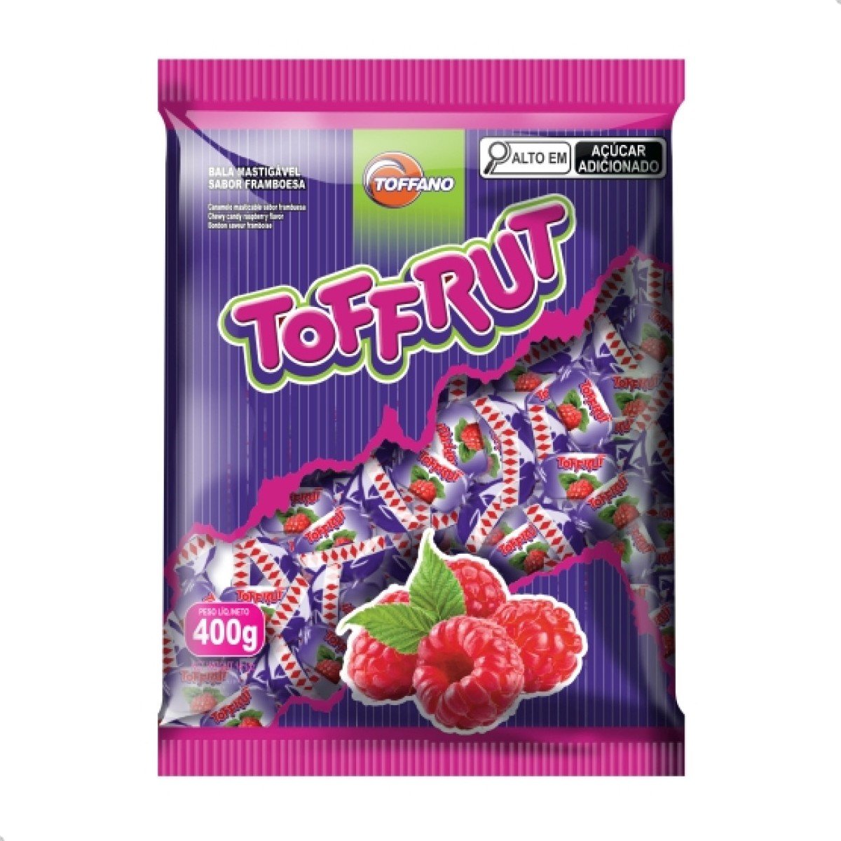 Bala Mastigável Framboesa 400g Toffrut Toffano