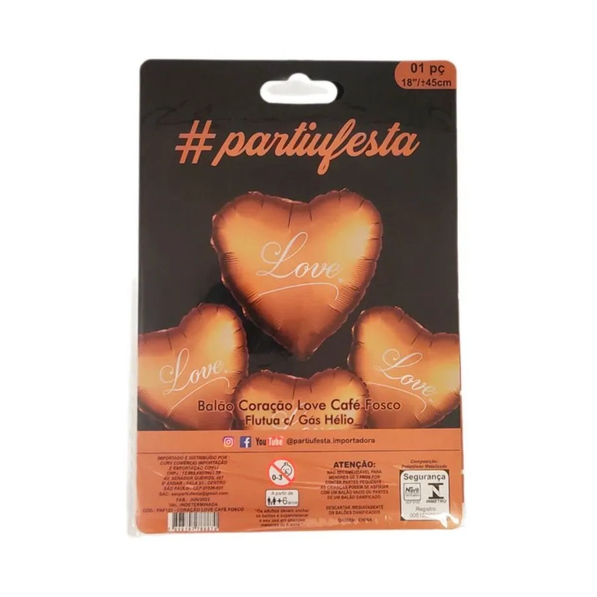 Bexiga Metalizada Coração Café Fosco 45cm Partiufesta