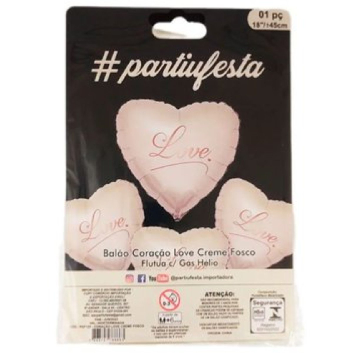 Bexiga Metalizada Coração Creme Fosco 45cm Partiufesta