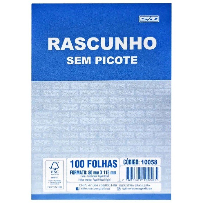 Bloco Rascunho 8x11 S/ Picote 100 Fls Sao Domingos