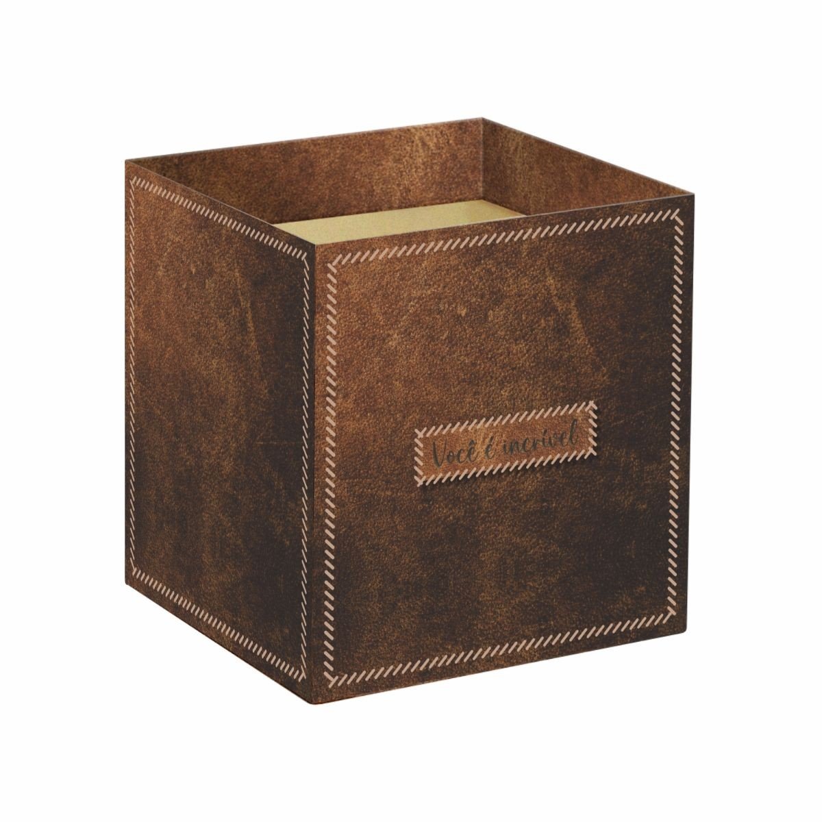 Cachepô Quadrado "Você é Incrível" Couro Marrom 14,5x14,5x15,5cm - Albano