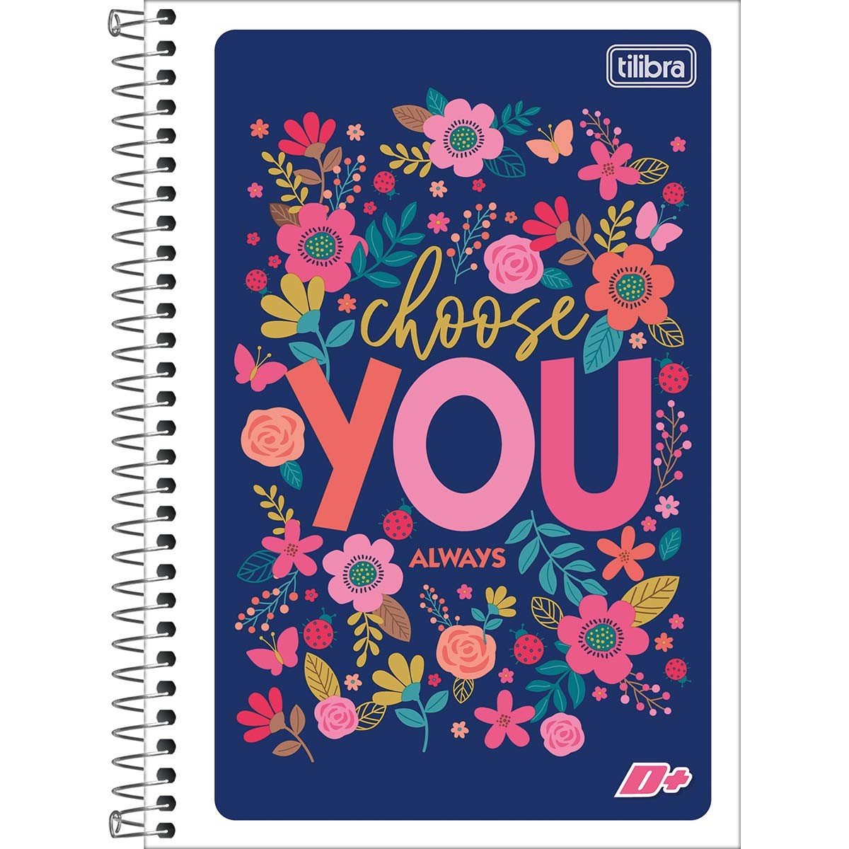 Caderneta Espiral Capa Flexível 1/8 96 Folhas Azul Choose You D+ Tilibra