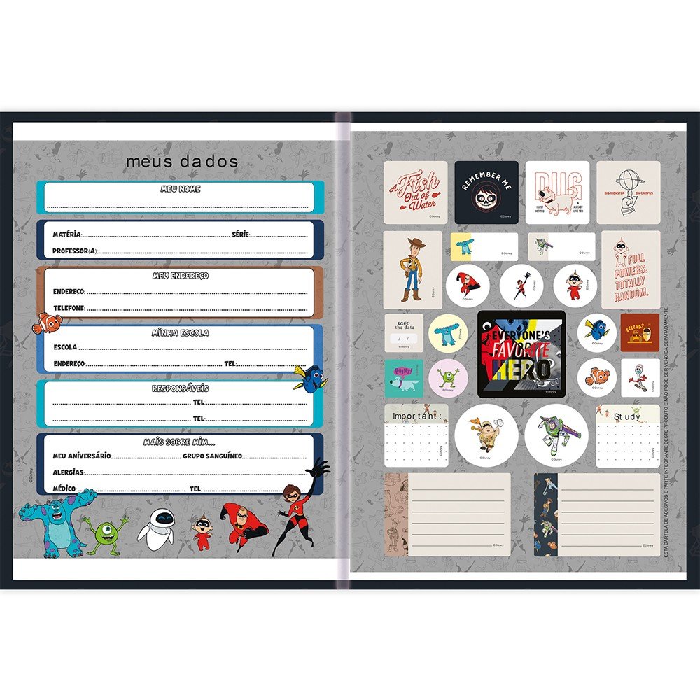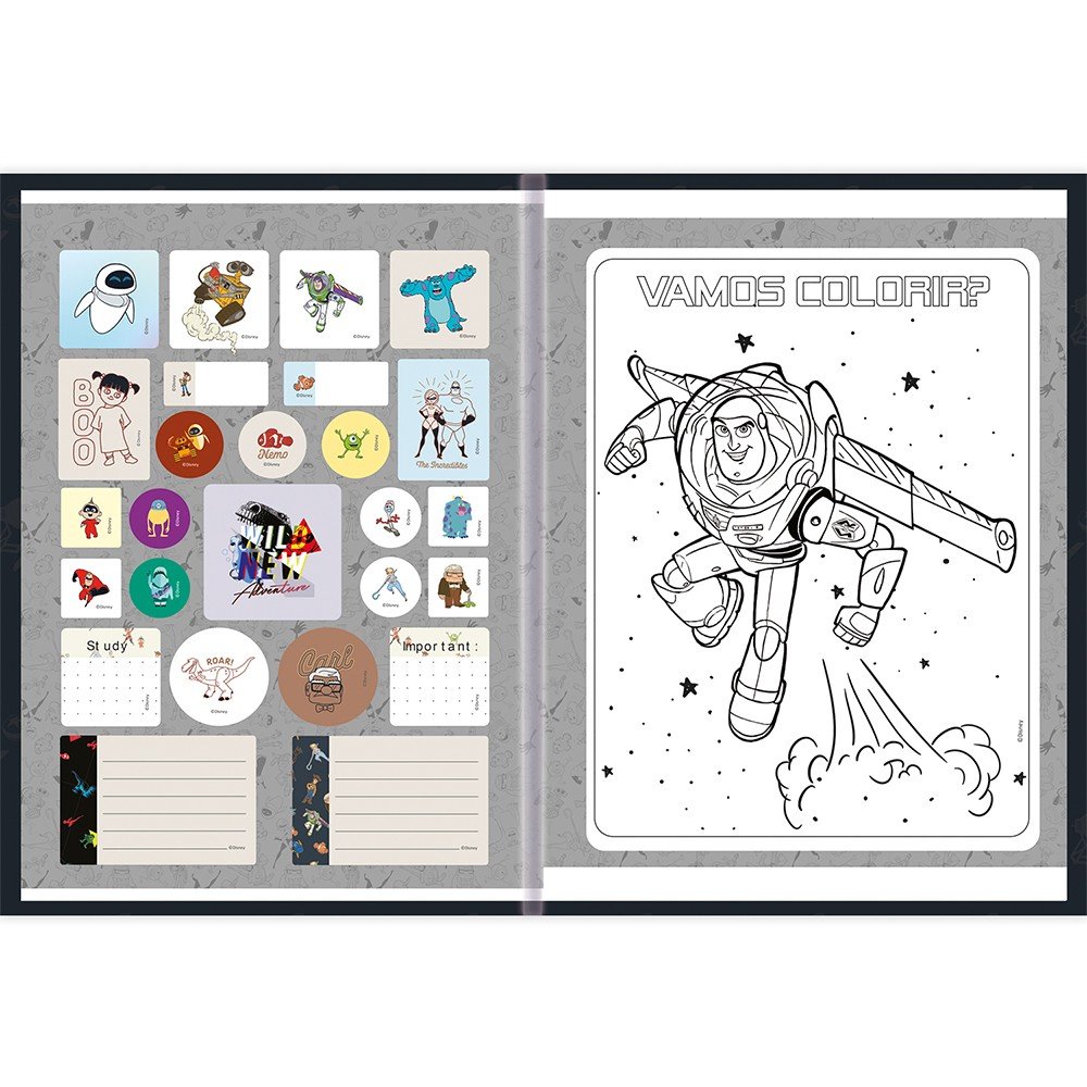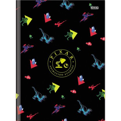 Caderno Brochura Universitário Capa Dura 80 folhas Preto Personagens Pixar São Domingos