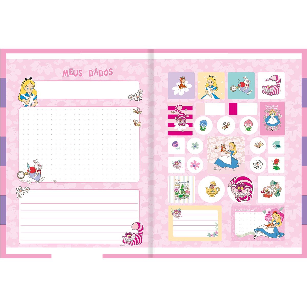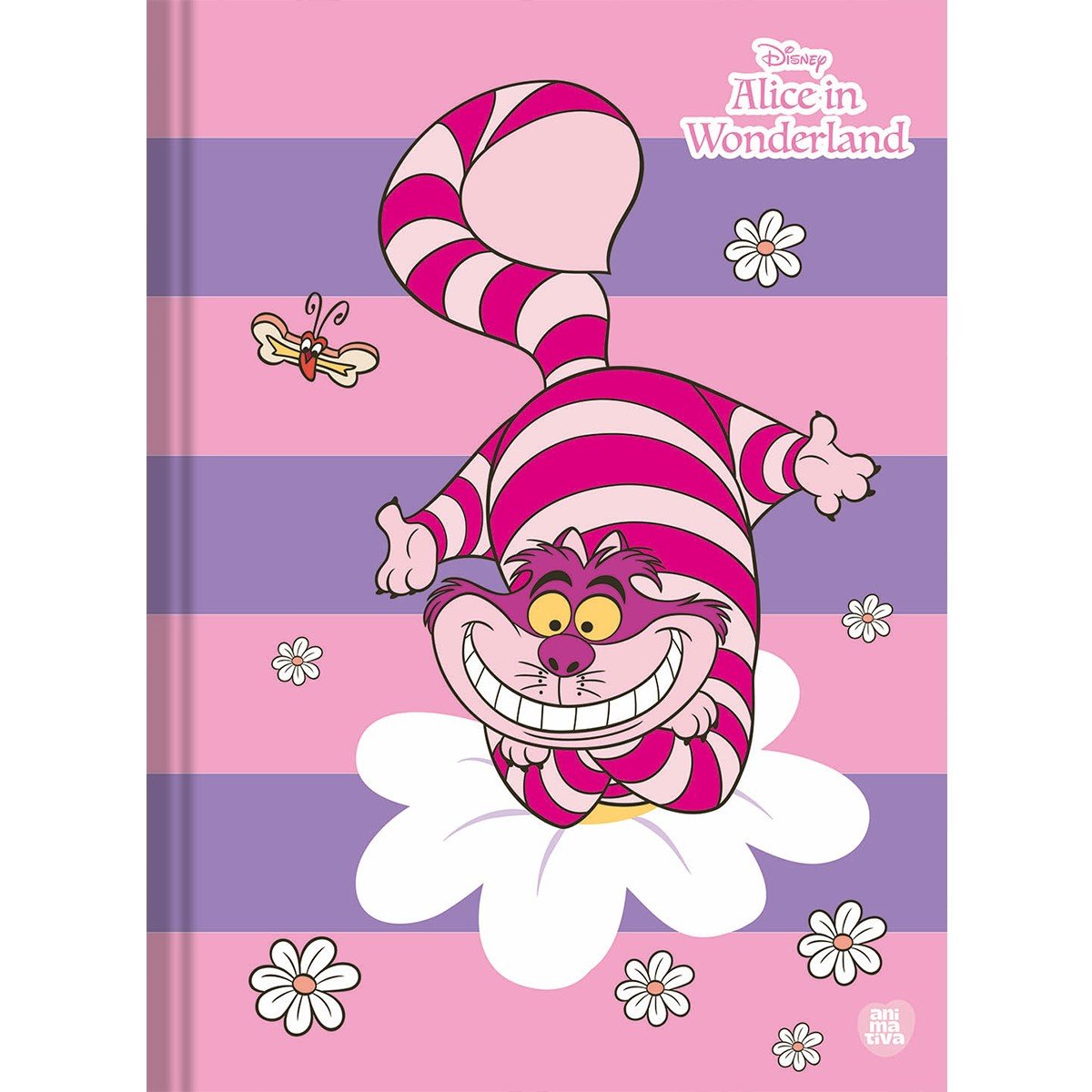 Caderno Brochura Universitário Capa Dura 80 Folhas Lilás Gato de Cheshire Alice Animativa