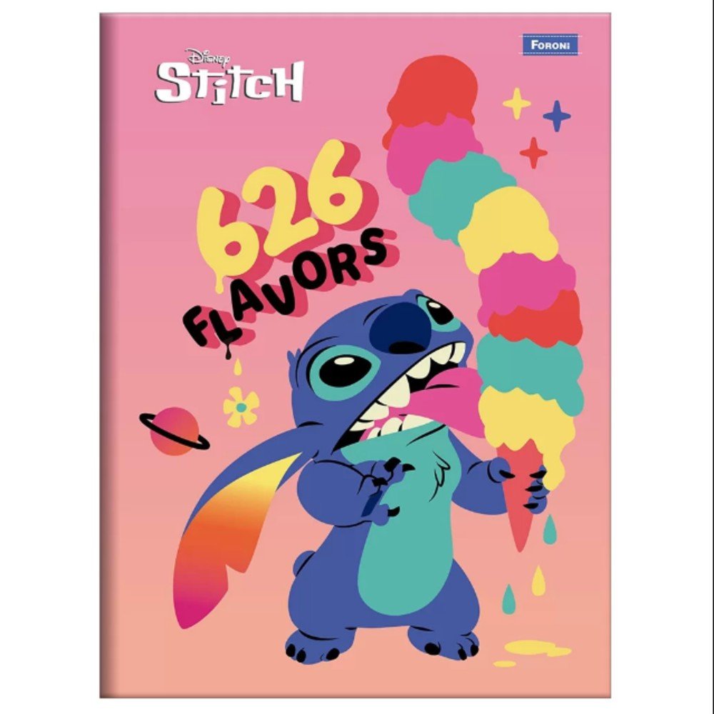 O caderno brochurão Stitch 80 folhas possui capa dura com laminação brilho e pauta básica. Ideal para o dia a dia na escola.