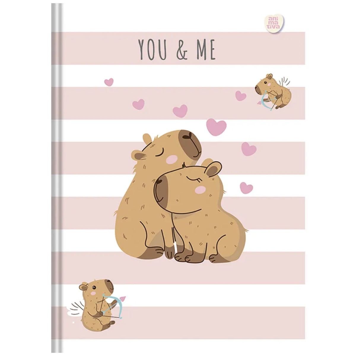 Caderno Brochurão Capa Dura Capivara Rosa e Branco Capycuties 80 Folhas Animativa
