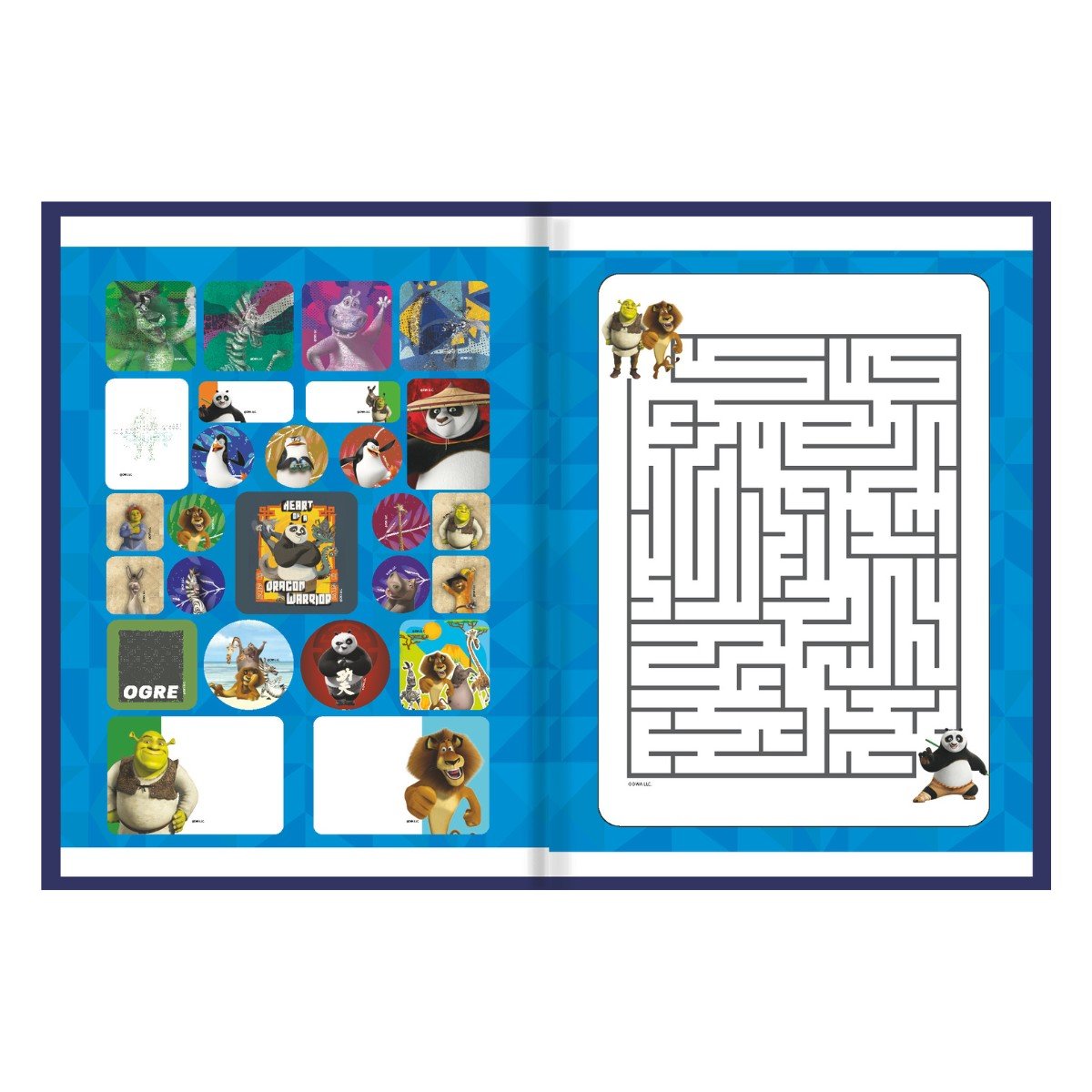 Caderno brochura DreamWorks com capa vibrante e personagens icônicos. Ideal para estudos e anotações diárias, oferecendo praticidade e estilo. Qualidade durável e folhas pautadas para uma escrita confortável.