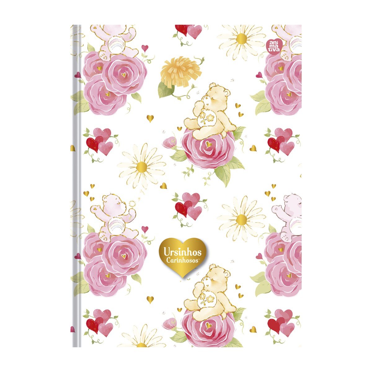 Caderno Capa Dura Colegial Ursinhos Carinhosos Branco Rosas 160 Fls Animativa