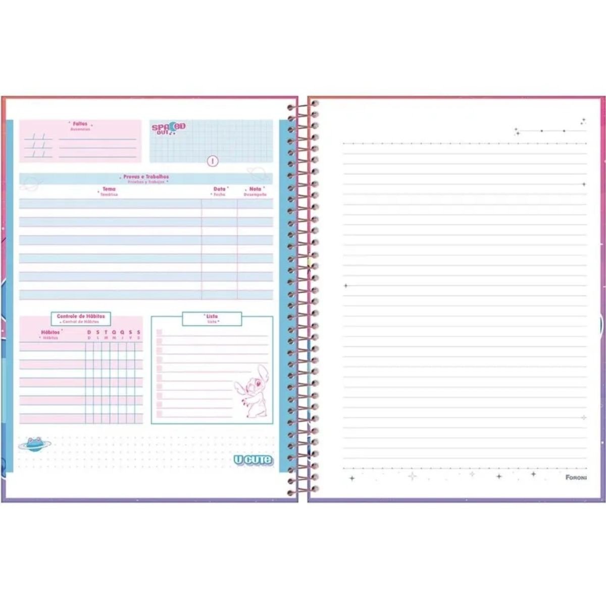 Use divisórias ou marcadores adesivos para separar matérias e deixar suas anotações ainda mais organizadas. Esse caderno também é uma ótima opção para presentear fãs do Stitch.