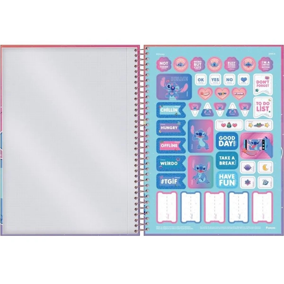 O Caderno Capa Dura Universitário Stitch da Foroni é ideal para quem busca organização, resistência e um visual divertido no dia a dia de estudos. Com 160 folhas, oferece ótimo espaço para anotações em disciplinas escolares, universitárias ou uso pessoal. Sua capa dura garante maior proteção ao conteúdo, enquanto o design do personagem Stitch traz um toque moderno e descontraído, perfeito para fãs do personagem.