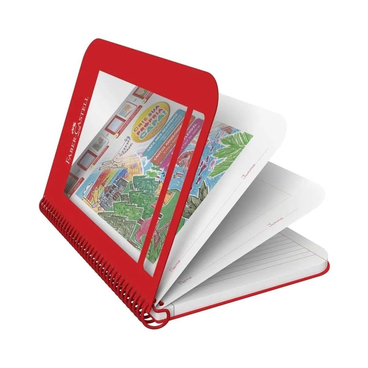 Caderno Criativo Faber-Castell 96 Folhas 20 x 27,5 cm crie sua Própria Capa em apenas 2 etapas: - Destaque a primeira página; - Faça colagens, desenhos ou atividades relacionadas a matéria; - Personalize até 3 vezes. Design exclusivo com cantos arredondados, evita a dobra das pontas;