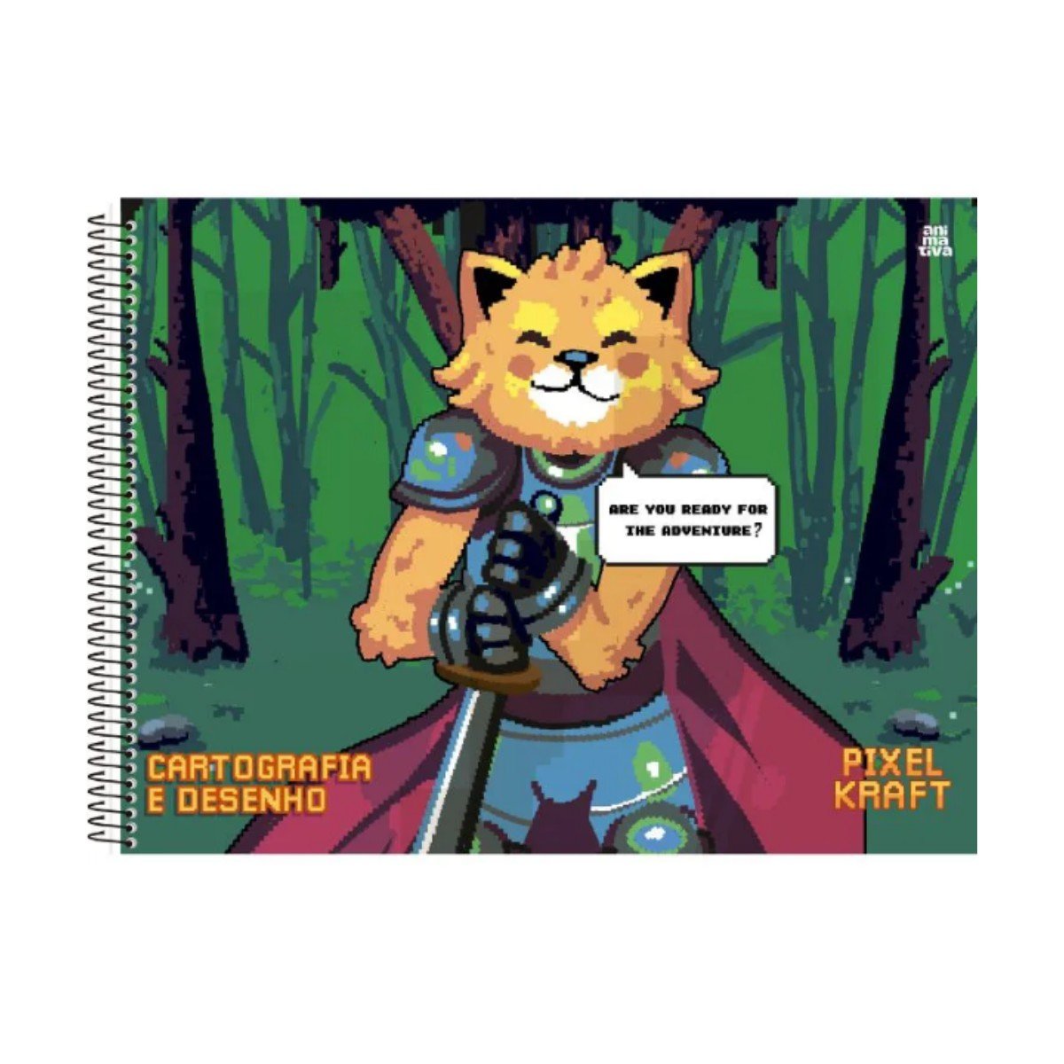 Caderno de Desenho Espiral Capa Dura 60 fls Colorido Gato Pixel Kraft São Domingos