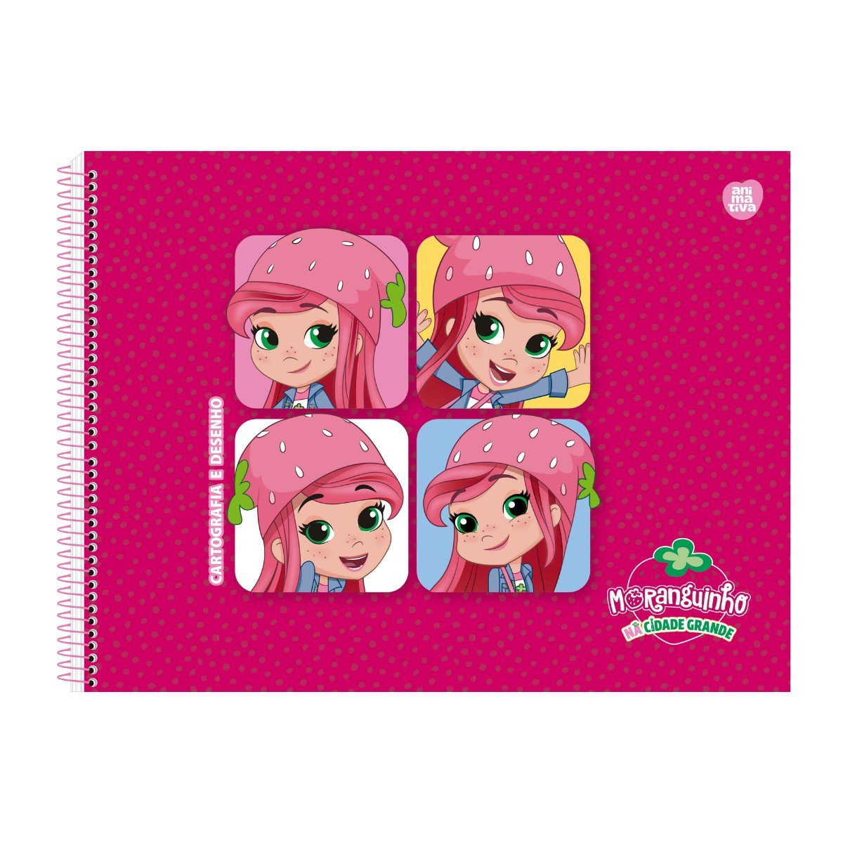 Caderno Desenho Sem Margem 60 Folhas Rosa Escuro 4 Moranguinhos Moranguinho Animativa