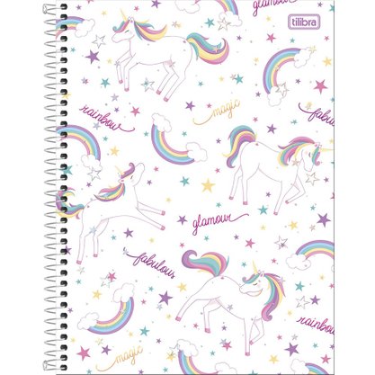 Caderno Espiral Universitário Capa Dura 160 folhas Branco Unicórnios Blink Tilibra