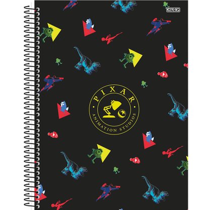 Caderno Espiral Universitário Capa Dura 80 folhas Preto Personagens Pixar São Domingos