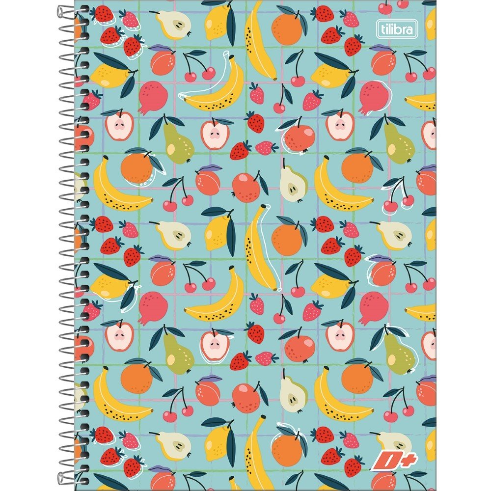 Caderno Espiral Universitário Capa Dura 96 folhas Azul Turquesa com Frutas D+ Tilibra