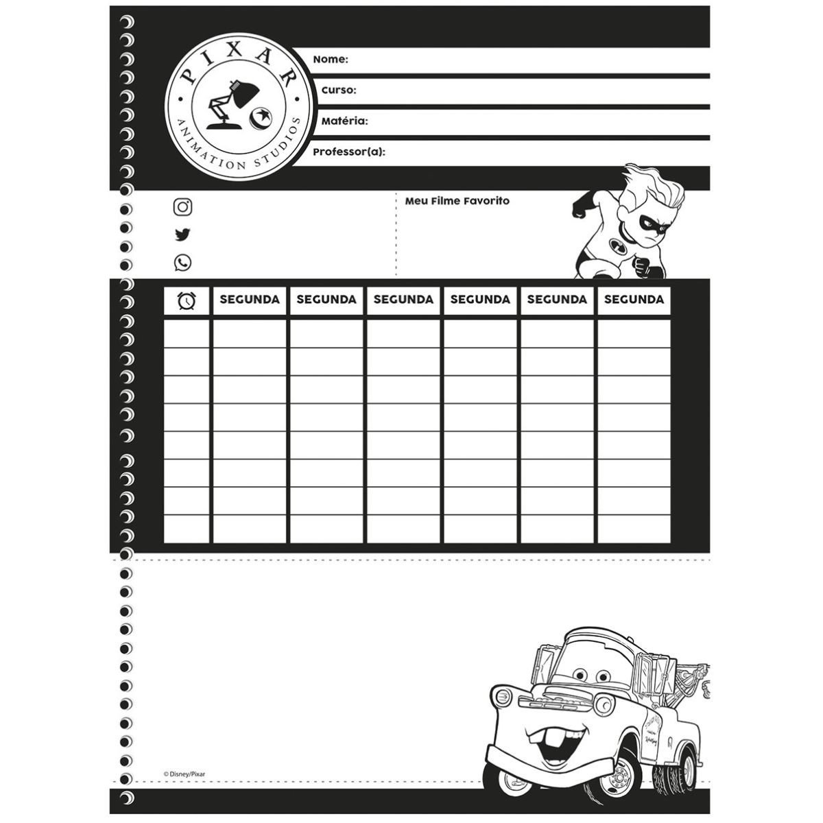 Caderno Pixar com capa vibrante e personagens icônicos. Ideal para estudos e anotações diárias, oferecendo praticidade e estilo. Qualidade durável e folhas pautadas para uma escrita confortável.