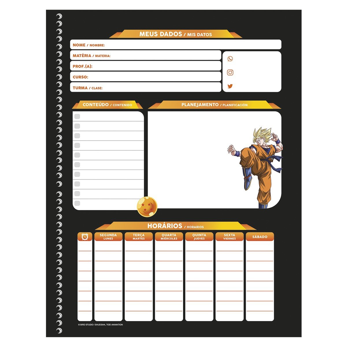 O Caderno Espiral Capa Dura Universitário 1 Matéria Dragon Ball Super 80 Folhas possui capa dura, folhas pautadas, espiral preto, folha de adesivos, alfabeto de libras e bolsa de papel. Ideal para o dia a dia na escola ou na faculdade.
