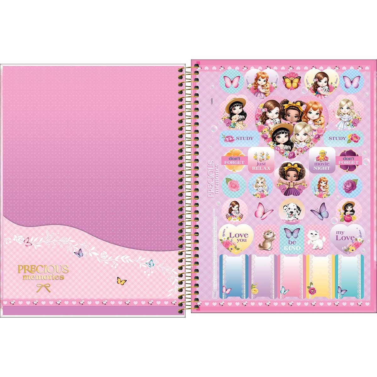 O Caderno Espiral Capa Dura Universitário 1 Matéria Jolie 160 Folhas possui capa dura com detalhe metalizado, parte interna decorada, bolsa de papel decorada para guardar trabalhos e anotações, folha com adesivos funcionais, folhas pautadas decoradas e espiral colorido. Ideal para o dia a dia na escola ou na faculdade.