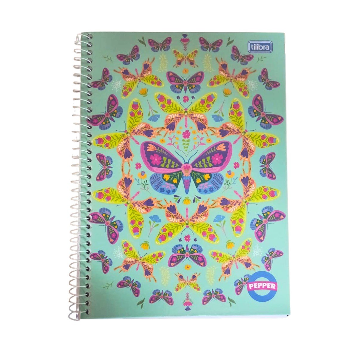 Caderno Espiral Universitário Capa Dura 160 fls Verde Borboletas Pepper Tilibra