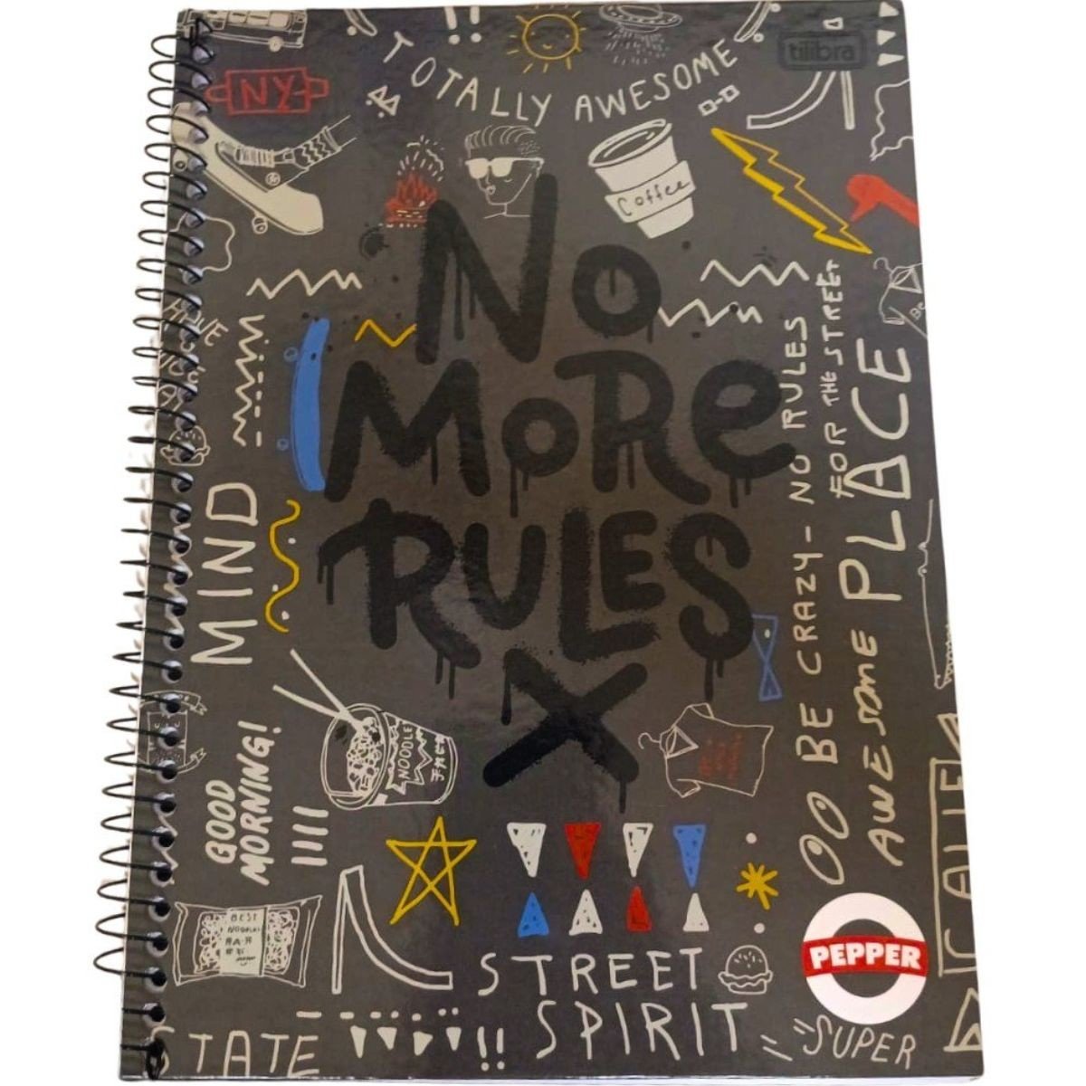 Caderno Espiral Universitário Capa Dura 160 Folhas Cinza No More Rules Pepper Tilibra