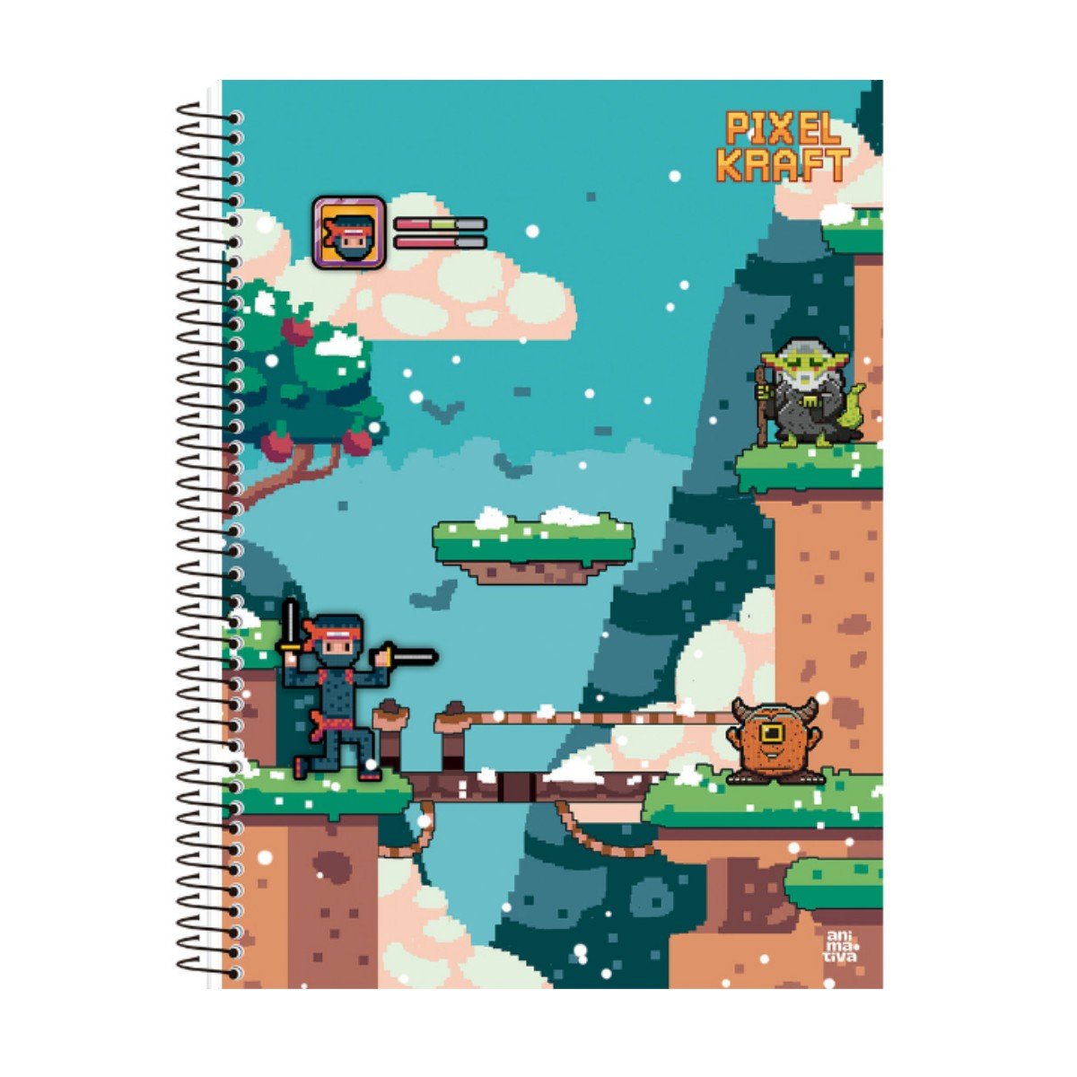 Caderno Espiral Universitário Capa Dura 80 folhas Azul Ninja Pixel Kraft São Domingos