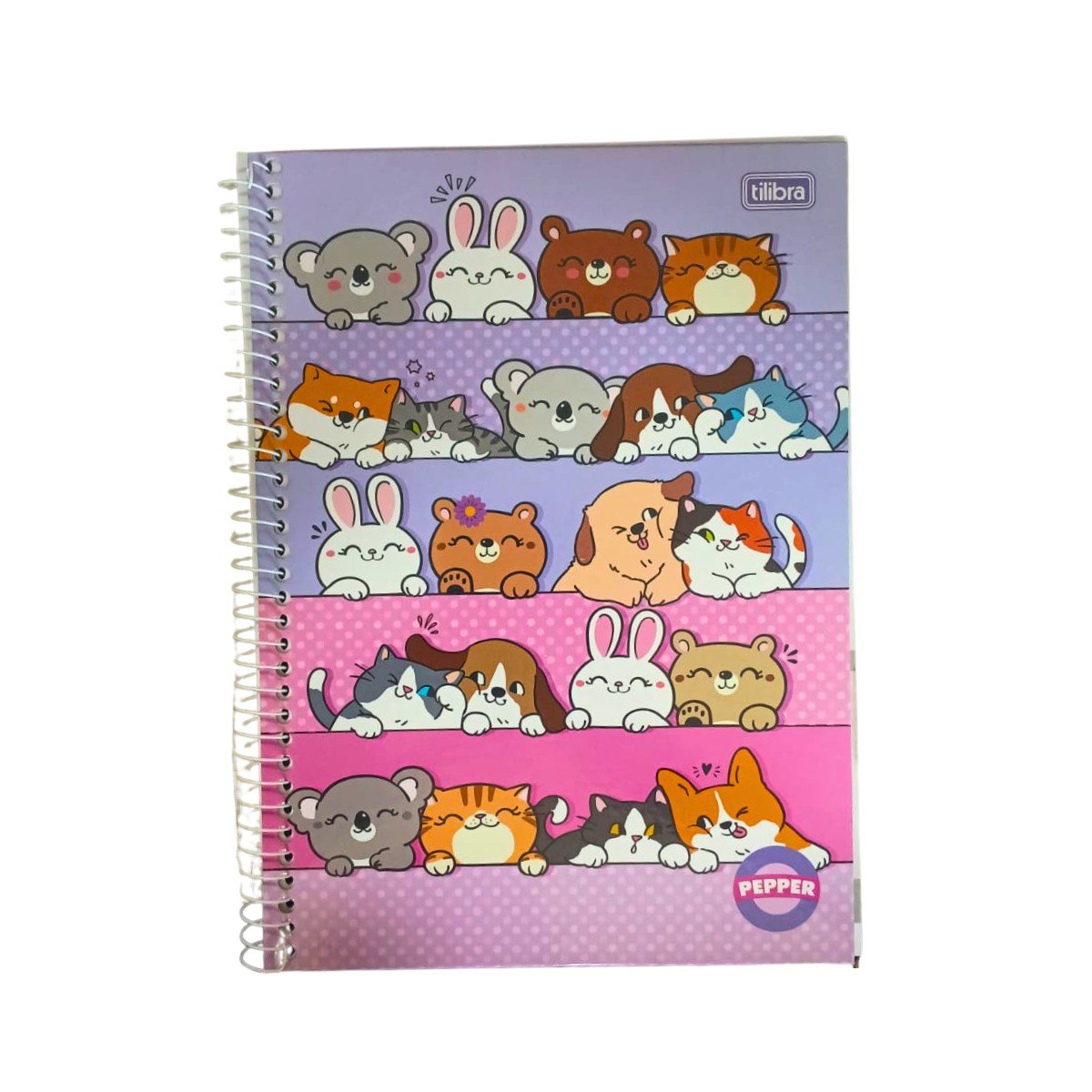 Caderno Espiral Universitário Capa Dura 80 folhas Lilás Pets Pepper Tilibra