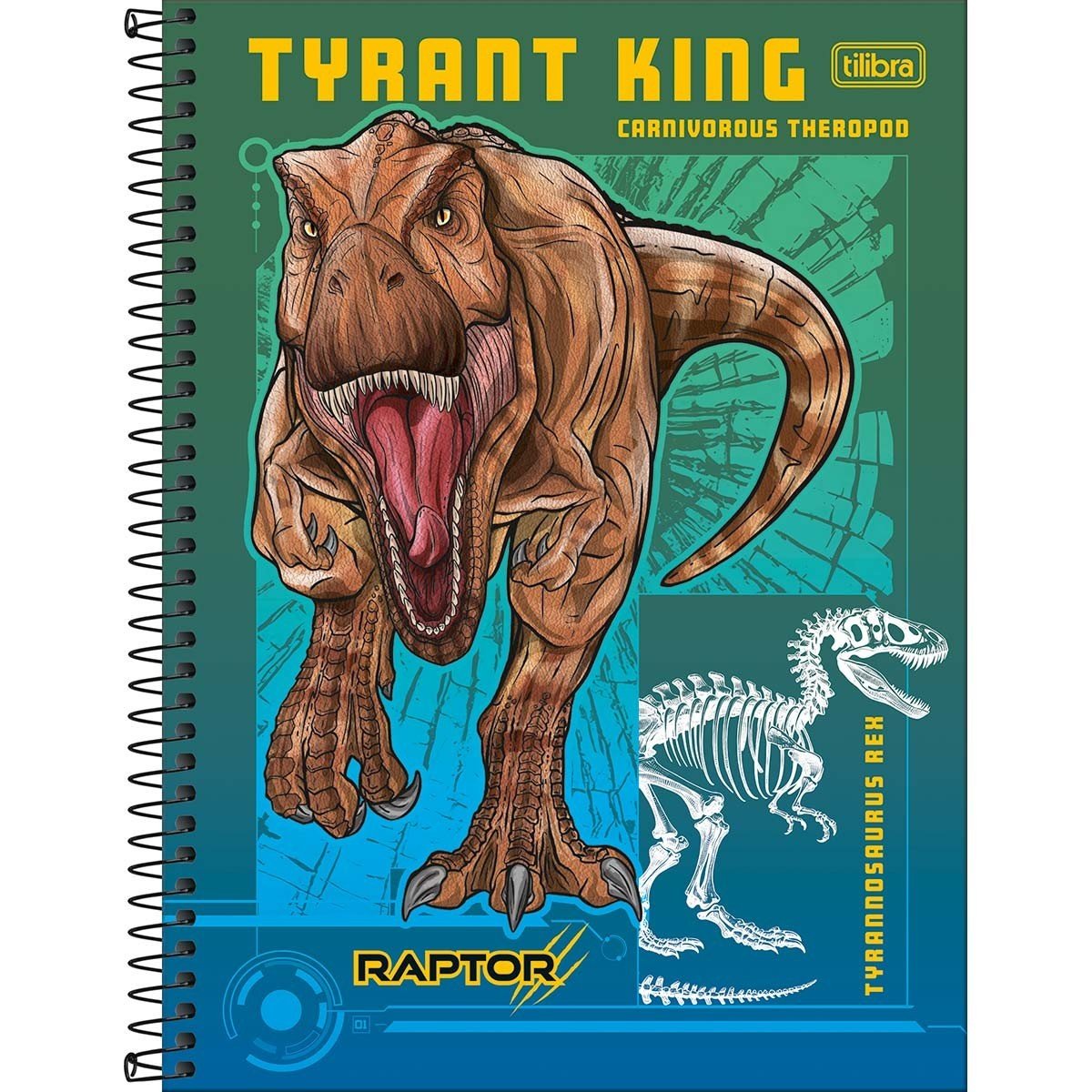 Caderno Espiral Universitário Capa Dura 80 Folhas Verde T-Rex Raptor Tilibra