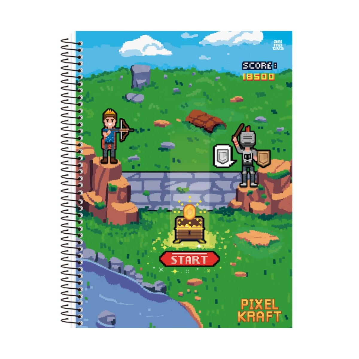 Caderno Espiral Universitário Capa Dura 80 folhas Verde Tesouro Pixel Kraft São Domingos