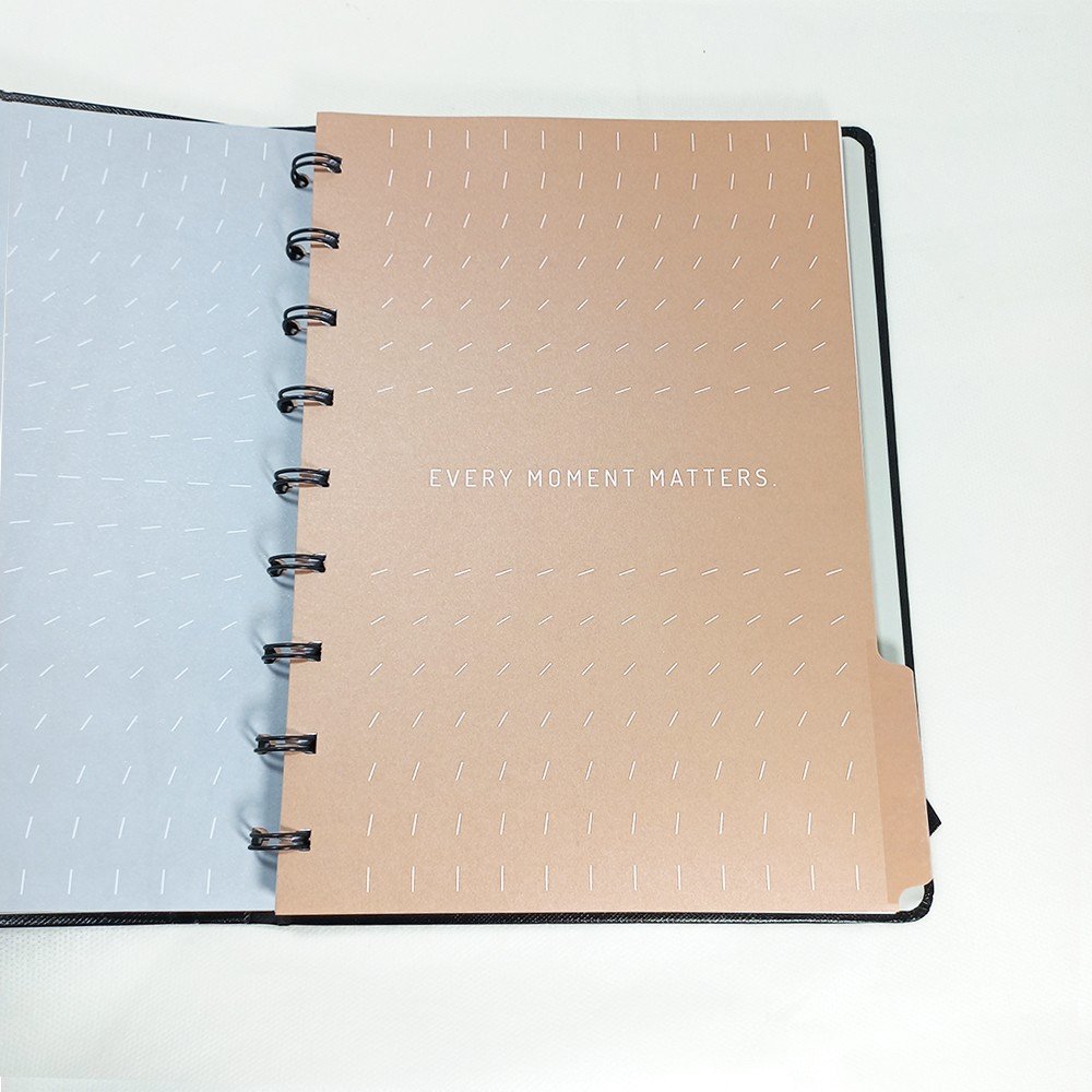 Caderno Notebook Noir Systemflex, traz um universo de possibilidades para te ajudar na sua rotina. Possui tecnologia exclusiva SystemFlex, com sistema intercambiável, que possibilita retirar e inserir novamente todas as folhas e acessórios do seu Planner sem danificar o papel, personalizando do seu jeito!