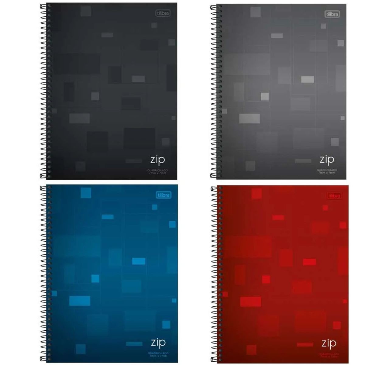 Caderno Quadriculado 7mm x 7mm Espiral Universitário Capa Dura 80 Folhas Cinza Zip Tilibra