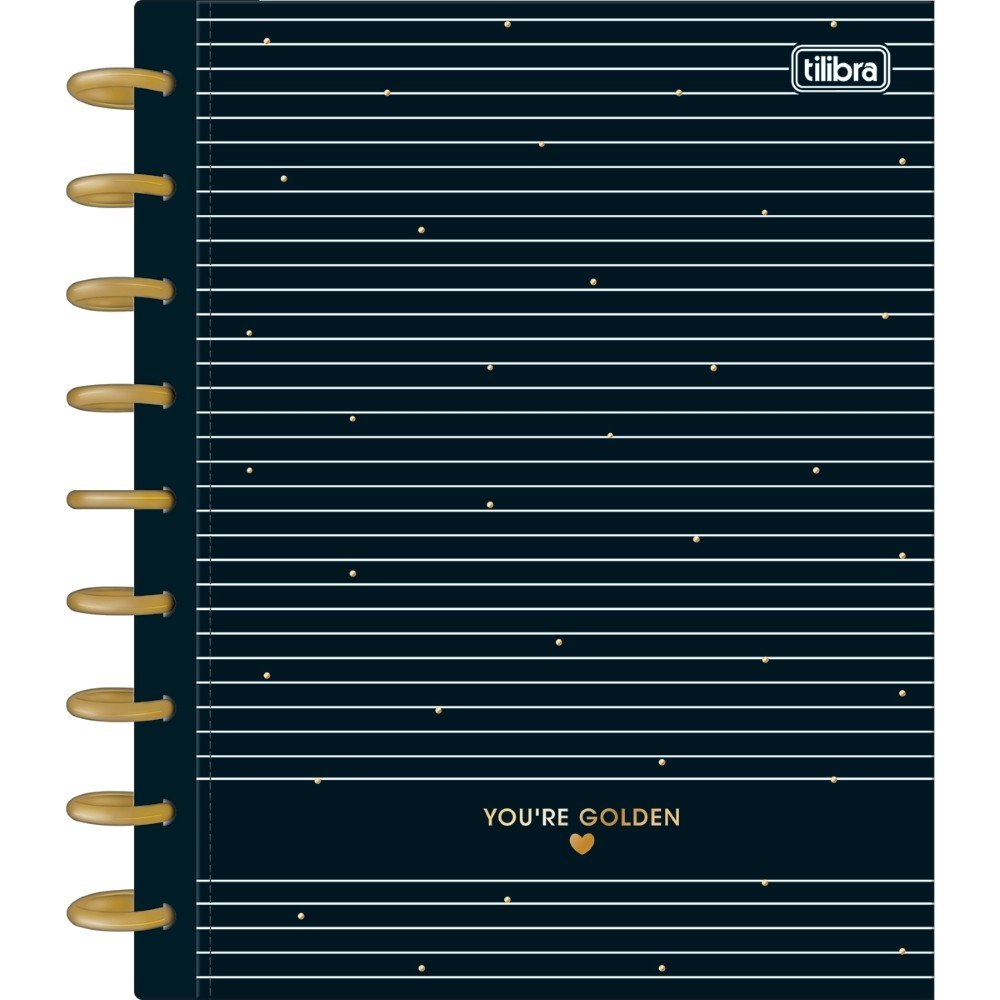 Caderno Tilidisco Colegial 80 Folhas Preta e Listras Douradas West Village Tilibra