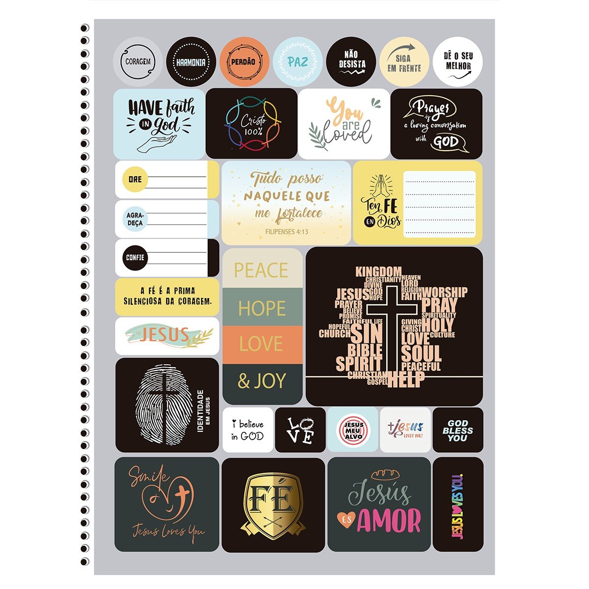 Caderno Universitário Espiral 80 Folhas Colorido Peace Hope Cristo 100% Animativa