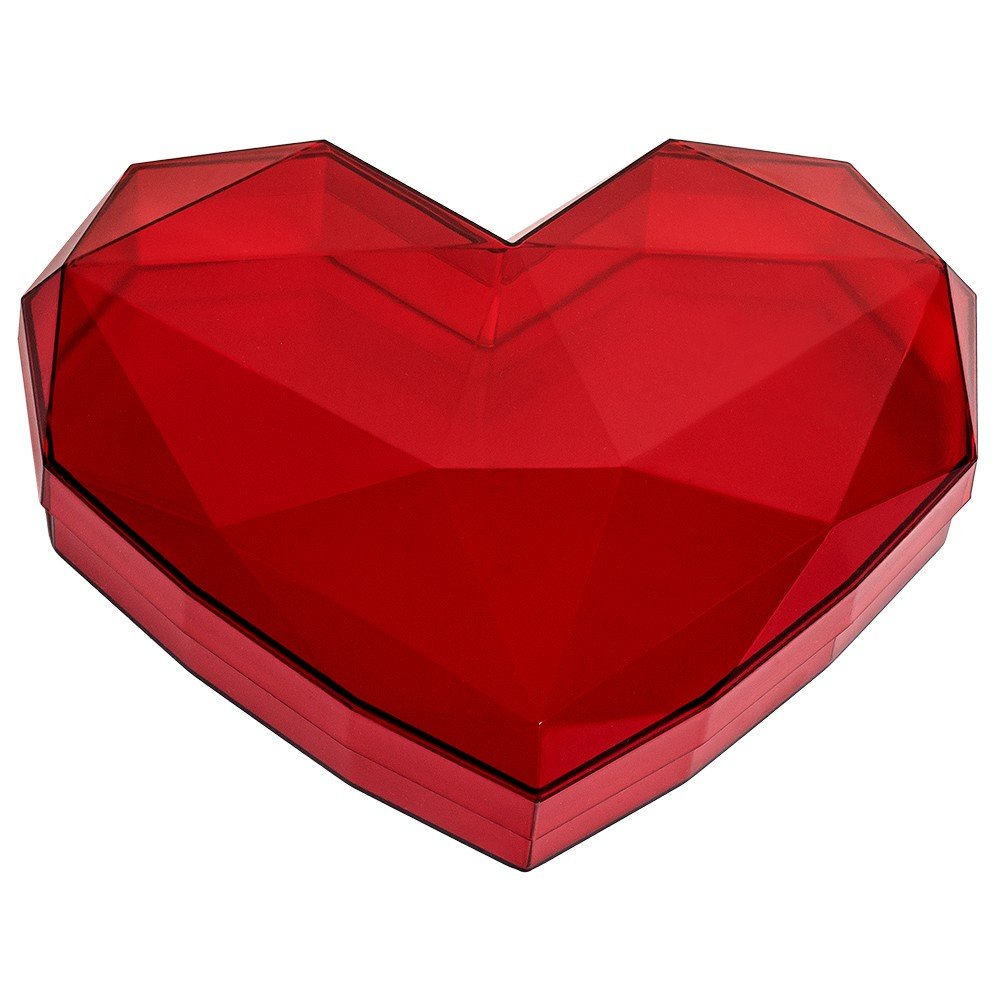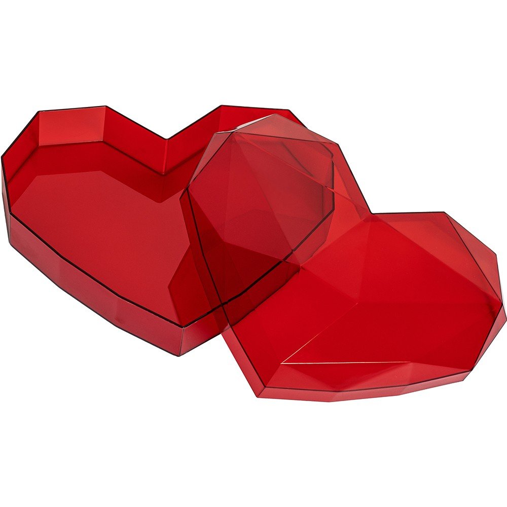 Caixa Acrílica Coração Lapidado Transparente Vermelho FestPlastik