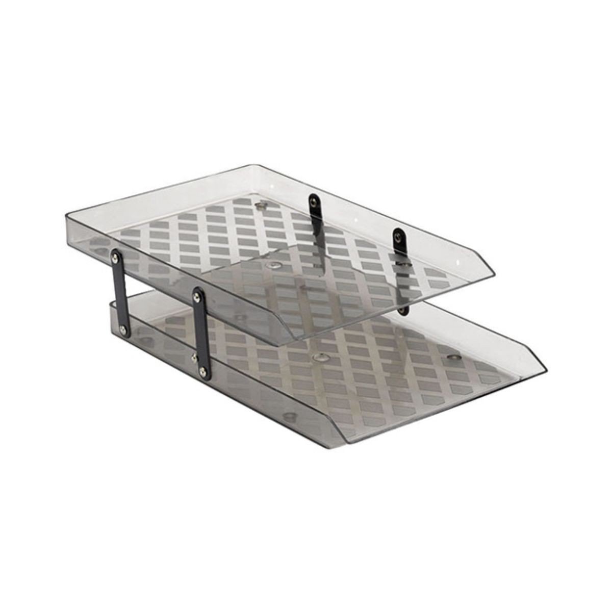 O modelo possui dois andares móveis, que permitem ampliar a capacidade de organização e facilitar o acesso aos documentos. Fabricada em acrílico resistente, garante durabilidade e elegância em um único produto.