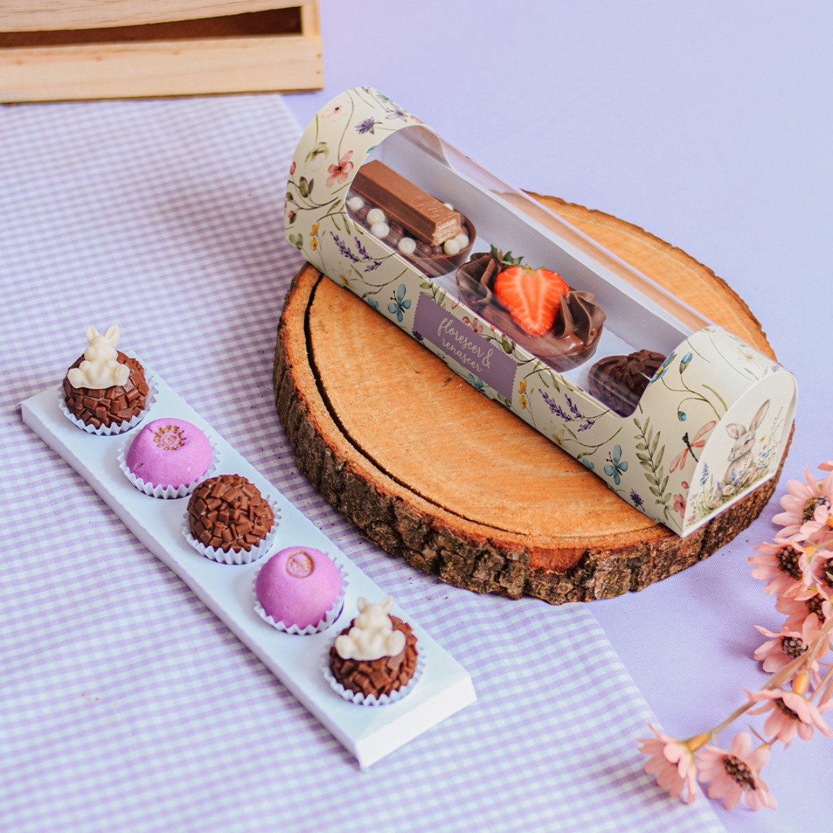 • Apresentação sofisticada: Realça a beleza dos ovos e docinhos, tornando-os mais atrativos.